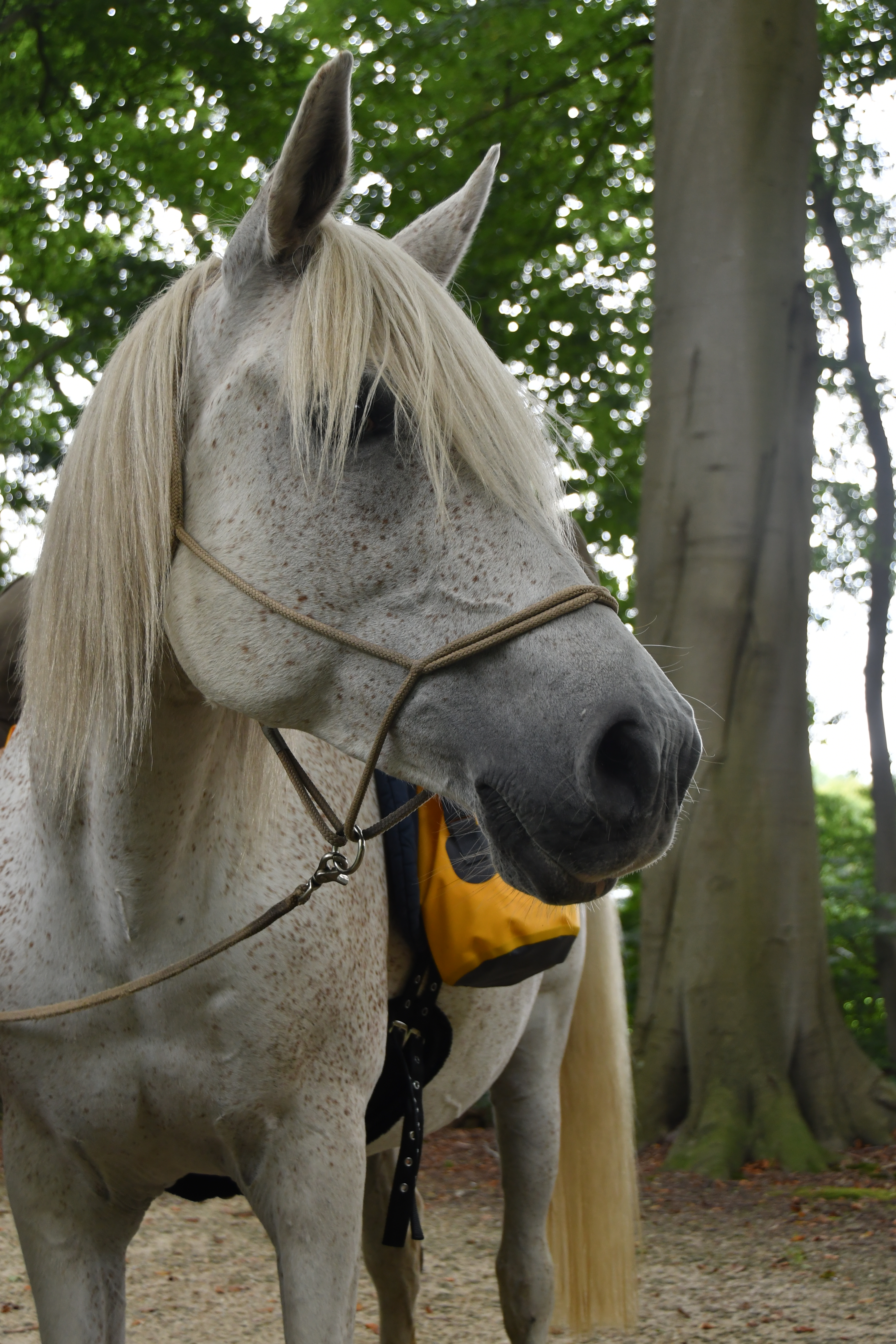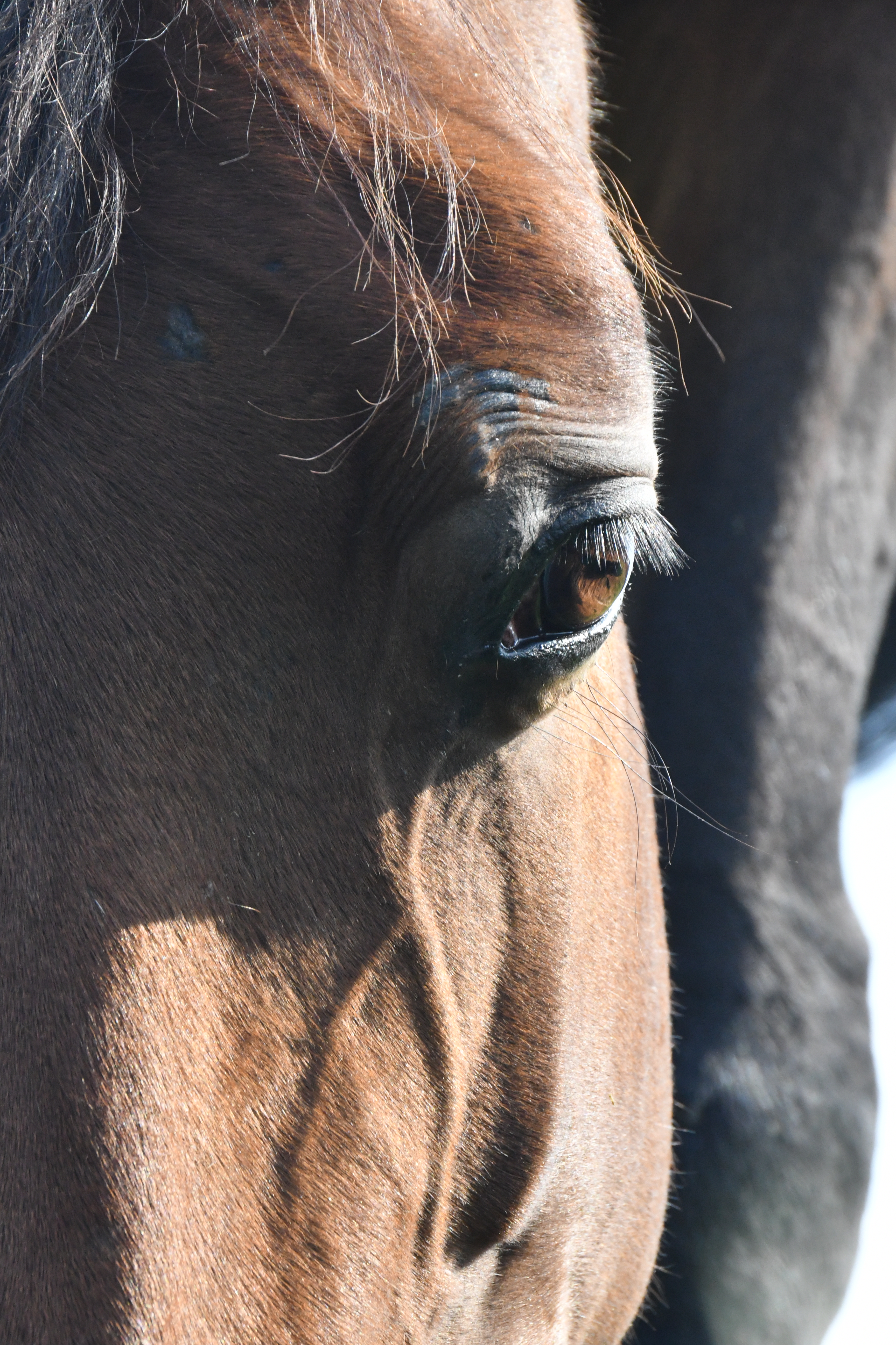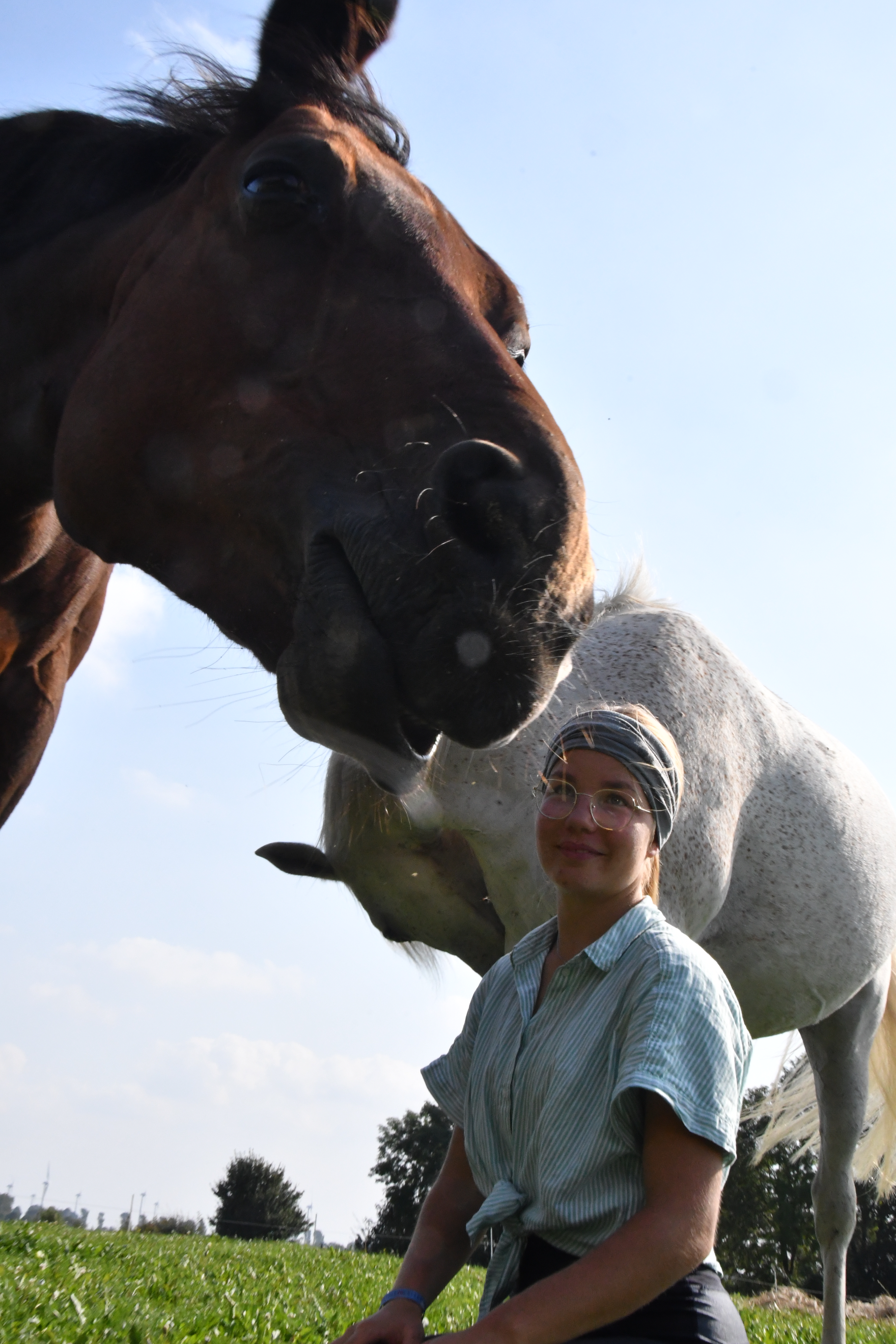 Amica ist der Inbegriff von „harte Schale – weicher Kern“: Sie ist ein älter-als-sie-ist-wirkendes, braunes Warmblut aus den Niederlanden mit großem, schiefen Kopf, auf den ersten Blick ruhig und gleichzeitig etwas kratzbürstig. Auf den zweiten Blick erkennt man eine liebe Dame, die, wenn man es schafft sie komplett anfassen zu dürfen, einen ganz stolz macht vor Glück.