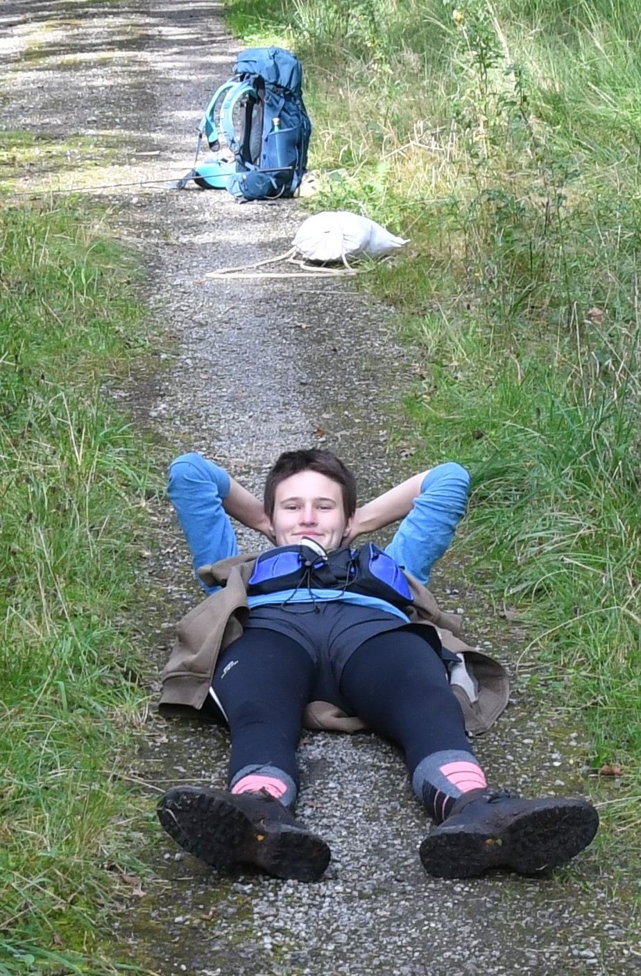 Nach der Pause opfert sich Hannah und trägt Phoebes Gepäck für die nächsten 3 Kilometer.