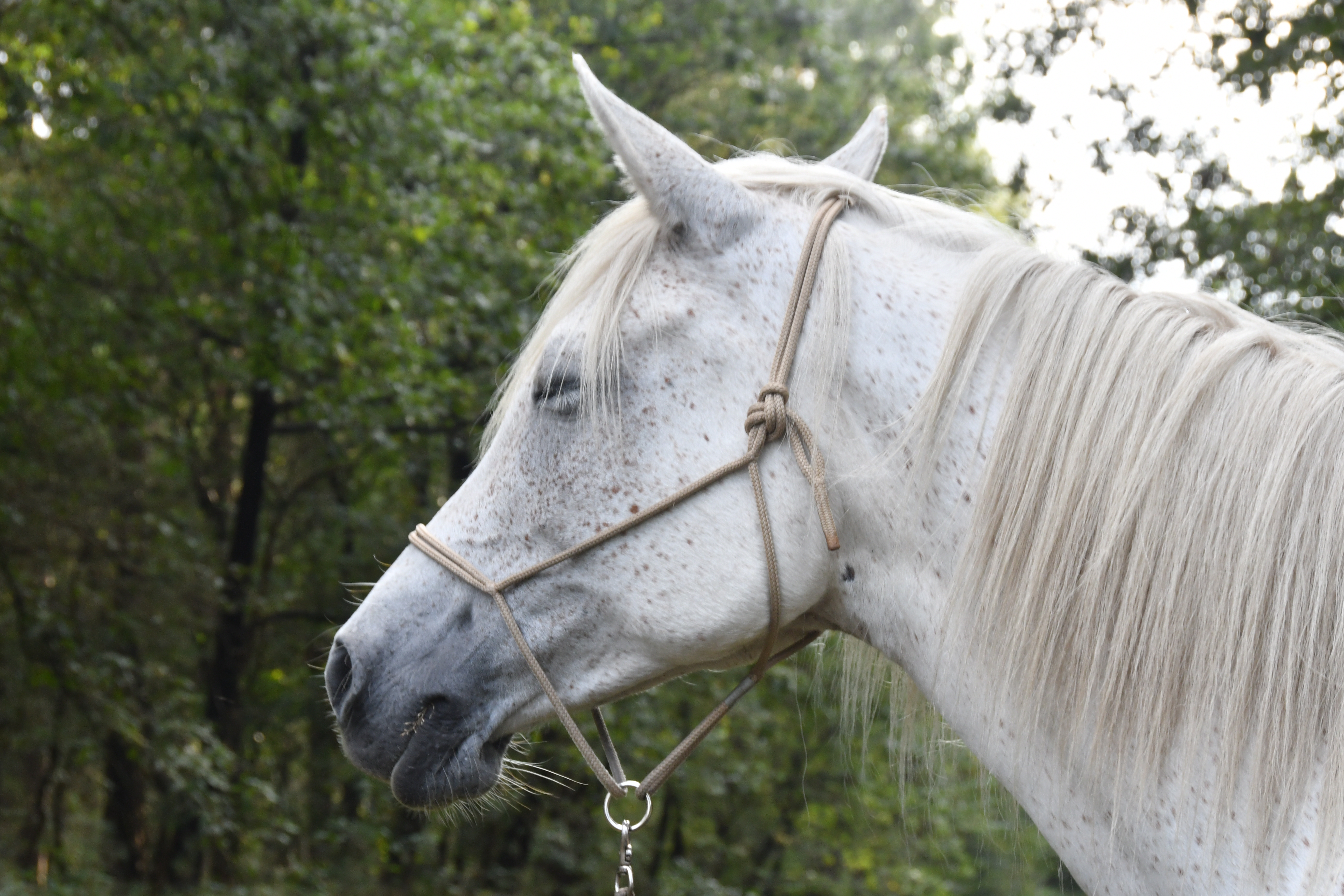 Wir gehen erneut runter und machen die Pferde auf der Stallgasse fertig. Phoebes Satteldruck-Stellen sehen deutlich besser aus. Da sie auch nicht mehr so empfindlich reagiert, beschließen wir den Longiergurt anzulegen und sie zu bepacken.