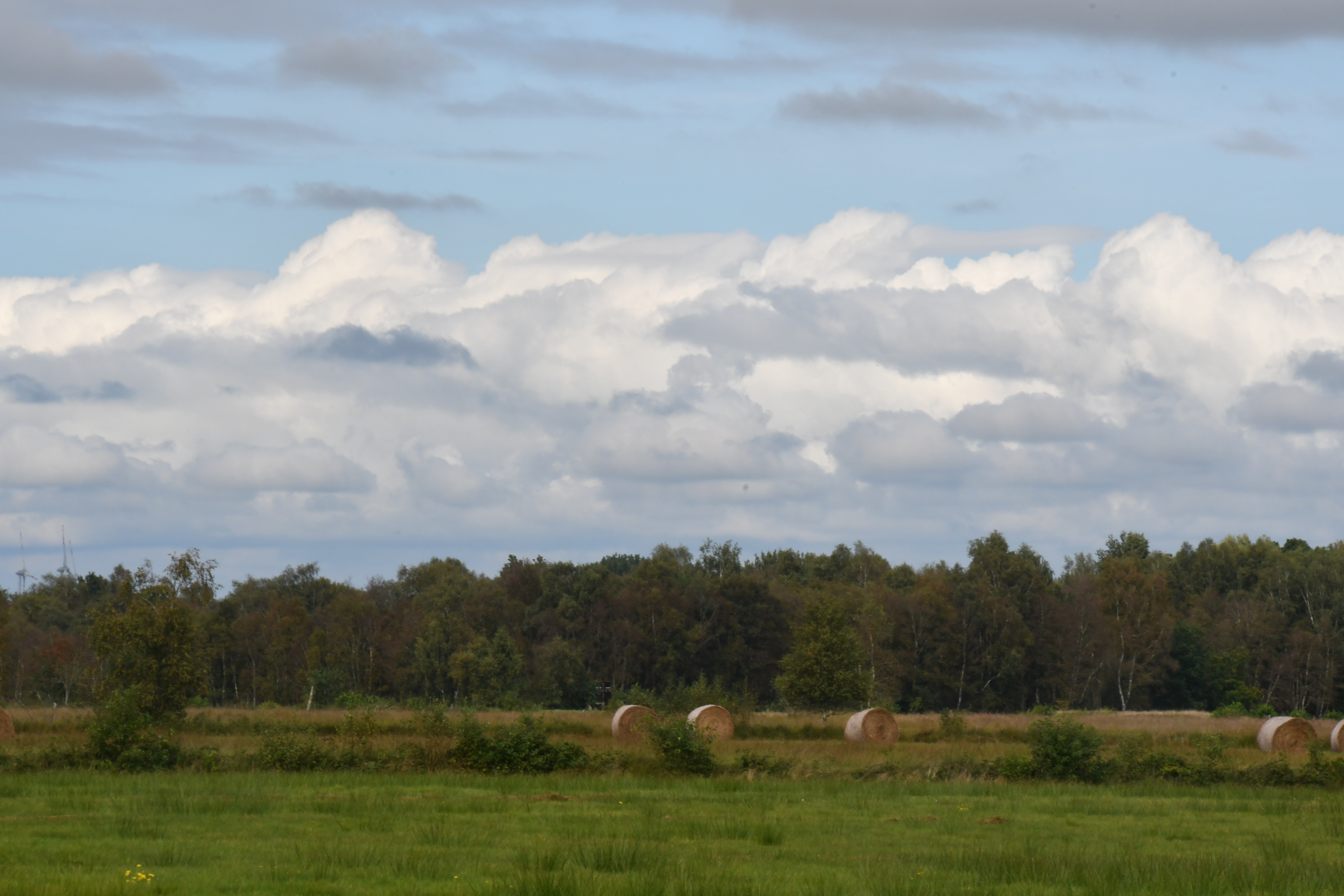 Zu Anfang laufen wir ein bisschen am Feld entlang, dann an einer Landstraße, unterwegs essen wir unsere köstlichen Brötchen. Wir biegen ab auf einen Sandweg und folgen diesem ewig lang nur geradeaus. Links und rechts sind Felder und Moorlandschaften.