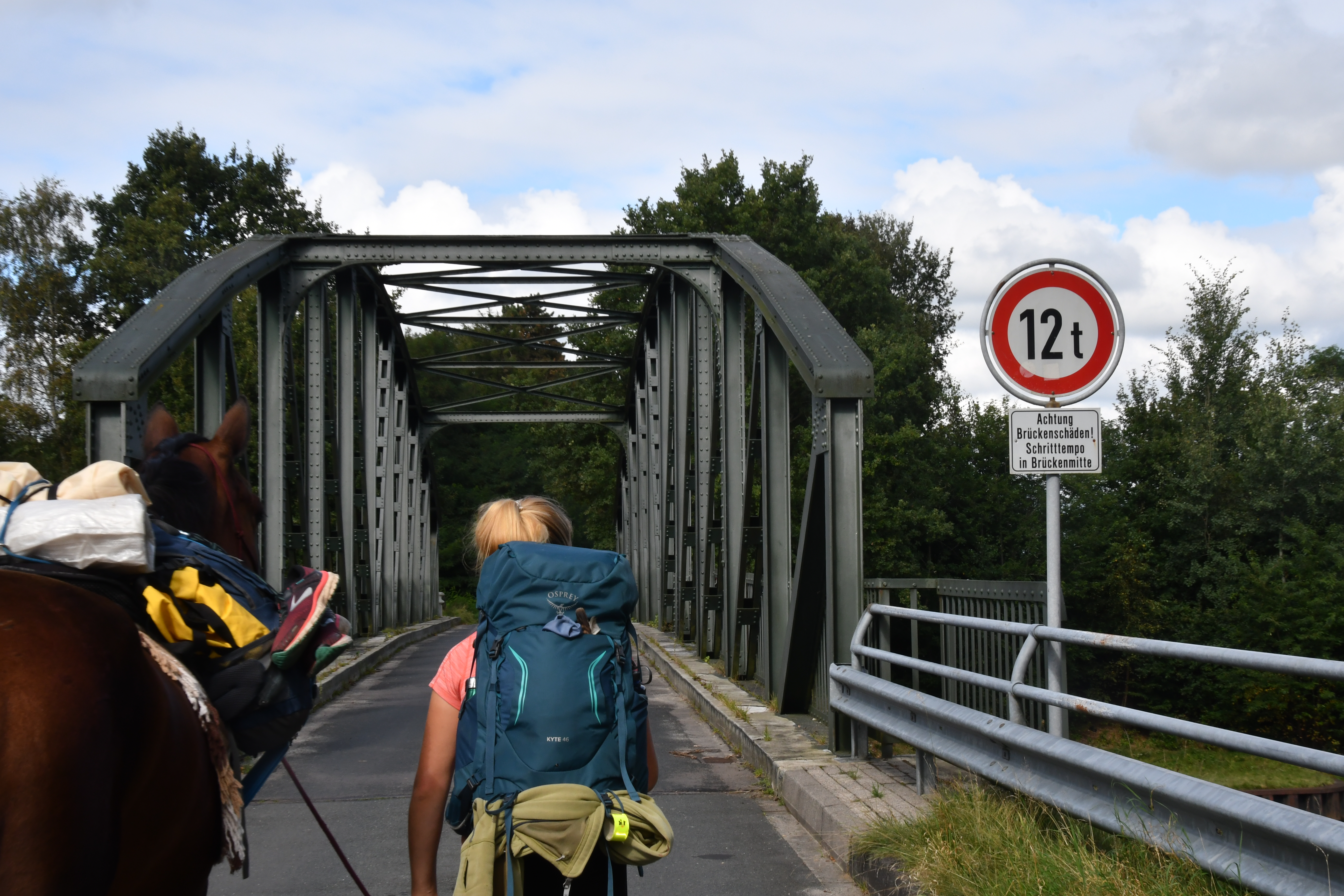 Das Stück nach Lähden kommt uns ganz locker-flockig vor, kein Vergleich zu den vorigen 14 km. Wir quatschen über Lebenseinstellungen, Wünsche und Ziele. Wir kommen wieder in einen Wald, haben einfach gute Laune. Hannah setzt sich sogar auf Phoebes Rücken. Anmerkung: Eigentlich sind wir die ganze Wanderung ausschließlich gelaufen. Da Hannah aber zuvor mit der schweren Tasche eine besondere Leistung erbracht hat, haben wir hier für etwa 3 km eine Ausnahme gemacht. 🙂