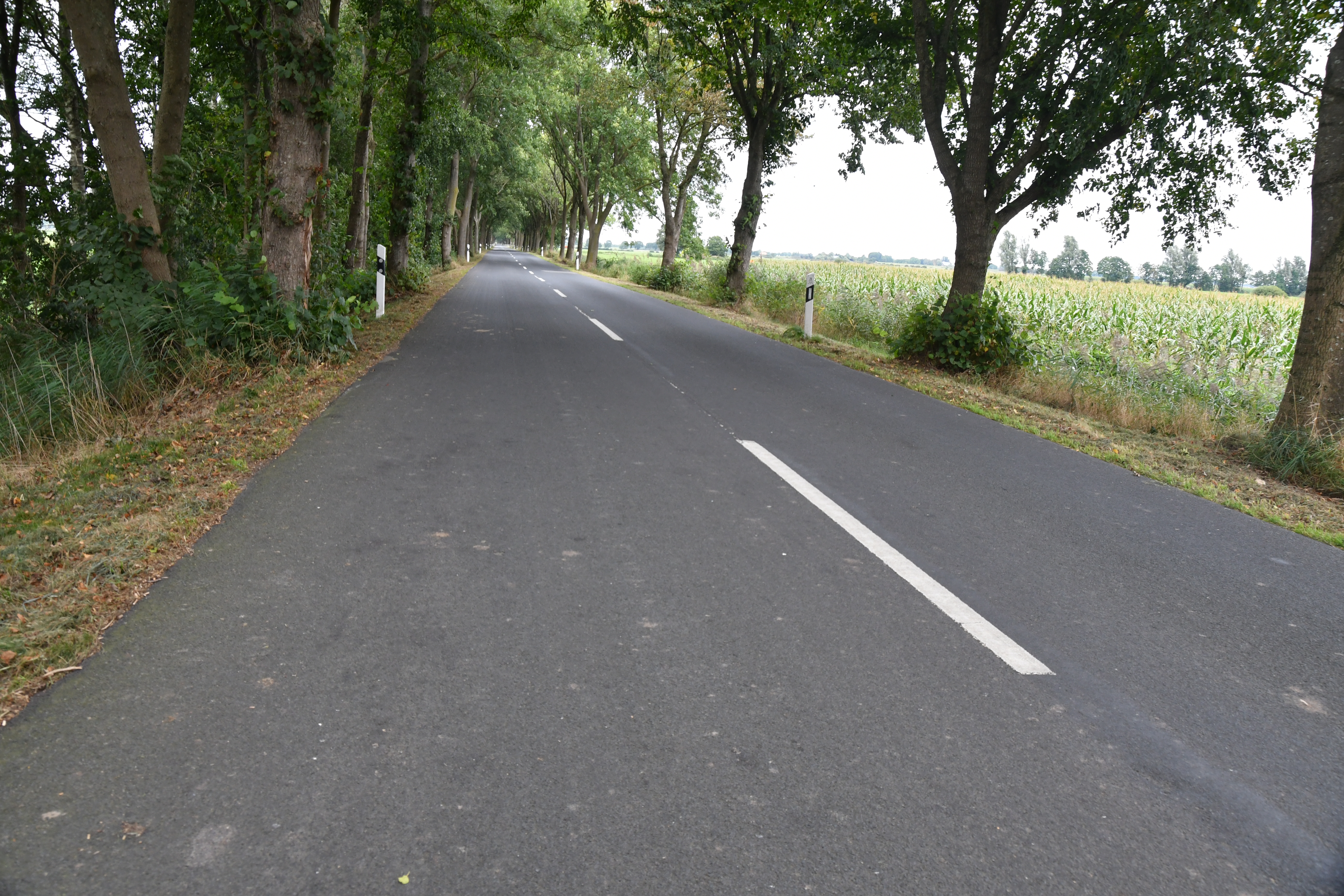 Wir verabschieden uns und laufen los. Es geht zunächst einmal quer durch Lähden und dann eine Landstraße entlang. Unterwegs schmeißt Elisa noch eine Postkarte ein. Dann laufen wir ein ganzes Stück parallel zu einer Landstraße. Der Weg ist, trotz dem Asphalt, ganz schön, zur Straße hin abgegrenzt durch Gebüsch und Bäume.