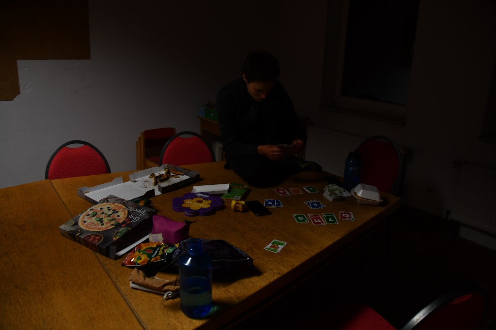 Wir bestellen uns abends Pizza, dürfen uns zwei Freigetränke nehmen und lassen den Abend mit einem Skipbo-Duell ausklingen.