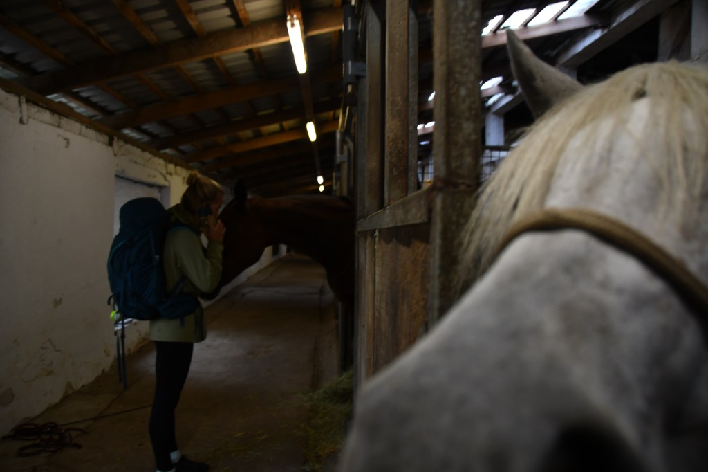 Wir erreichen den Hof, der direkt am Wald angrenzt und bekommen gleich zwei nebeneinander liegende Boxen zugeteilt, sowie für uns eine sehr schöne Ferienwohnung präsentiert. Sogar mit Dusche und eigenem Bett! Normalerweise auch für uns ganz normal aber in diesem Moment purer Luxus. Die 40€ pro Person (inkl. Box) geben wir gerne aus. Elisa kocht sich als erstes einen Kaffee, Hannah genießt einen heißen Tee.