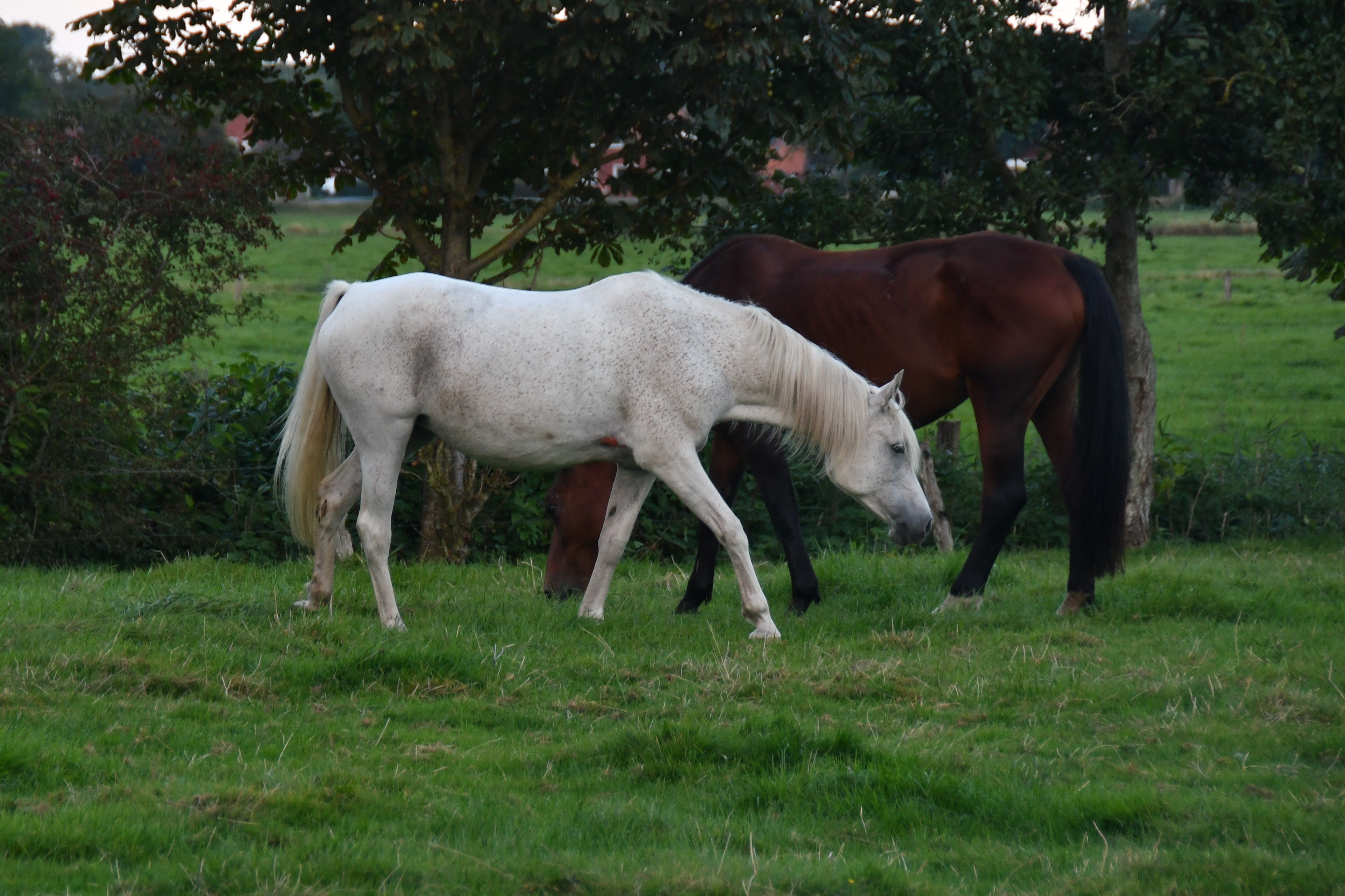 Wir kommen in einen kleinen Ort und fragen, leicht verzweifelt, eine Passantin, ob sie Pferdemenschen, Menschen mit Pferden, kennt. Dazu gesellt sich ein Paar mit Fahrrädern. Sie bekommen unser Problem mit und bieten sofort ihre Hilfe an. Sie sagen, dass sie selbst Pferde haben und uns aufnehmen würden. Sie wohnen 10 km entfernt. Zu weit für uns in diesem Moment. Sie schlagen uns sogar vor uns mit einem Pferdeanhänger abzuholen. Wir sind sehr froh, tauschen Nummern aus und haben so schon mal einen Plan B falls wir tatsächlich keinen Hof vor Ort finden sollten. Die erste Passantin, die wir getroffen haben, hat inzwischen nachgedacht und erinnert sich an eine Engländerin mit Pferden, die die Straße weiter wohnt und sehr nett ist. Wir versuchen unser Glück, folgen der Wegbeschreibung, humpelnd und langsam und finden den kleinen Stall mit 5 Boxen vor. Es ist mittlerweile 17:30 Uhr. Die Besitzer denken nicht groß nach, wir werden gleich aufgenommen. Phoebe und Amica bekommen eine Wiese, wir wollen erst in einer der Boxen schlafen. Dann aber ruft der Stallbesitzer, ein Holländer, seine Frau, die Engländerin, die für 2 Wochen in Frankreich ist, an und diese stellt klar, dass wir im Gästezimmer übernachten dürfen. Wir sind überglücklich und sehr Erleichtert. Wir bekommen die 5 Pferde, 2 Hunde und einen ganzen Haufen Katzen vorgestellt und werden prompt zum Tee trinken in die Küche eingeladen. Wir packen unsere Sachen ins Gästezimmer, gehen nacheinander ins Bad. Elisa duscht sich zu einem neuen Menschen, Hannah nutzt den Luxus und badet ausgiebig. Anschließend gehen wir in die Kneipe nebenan. Dort wird ein Fußballspiel live übertragen. Mehrere junge Fans sind da, betrinken sich und grölen rum. Unsere Nerven werden nochmal strapaziert. Dann kommt aber unser Essen und uns geht es schon viel besser. Wir werden auf einen Schnaps eingeladen, verlassen danach die Kneipe und schauen nochmal bei den Pferden vorbei bevor wir zurück ins Haus gehen. An diesem Abend schaffen wir nichts mehr und fallen direkt ins Bett.