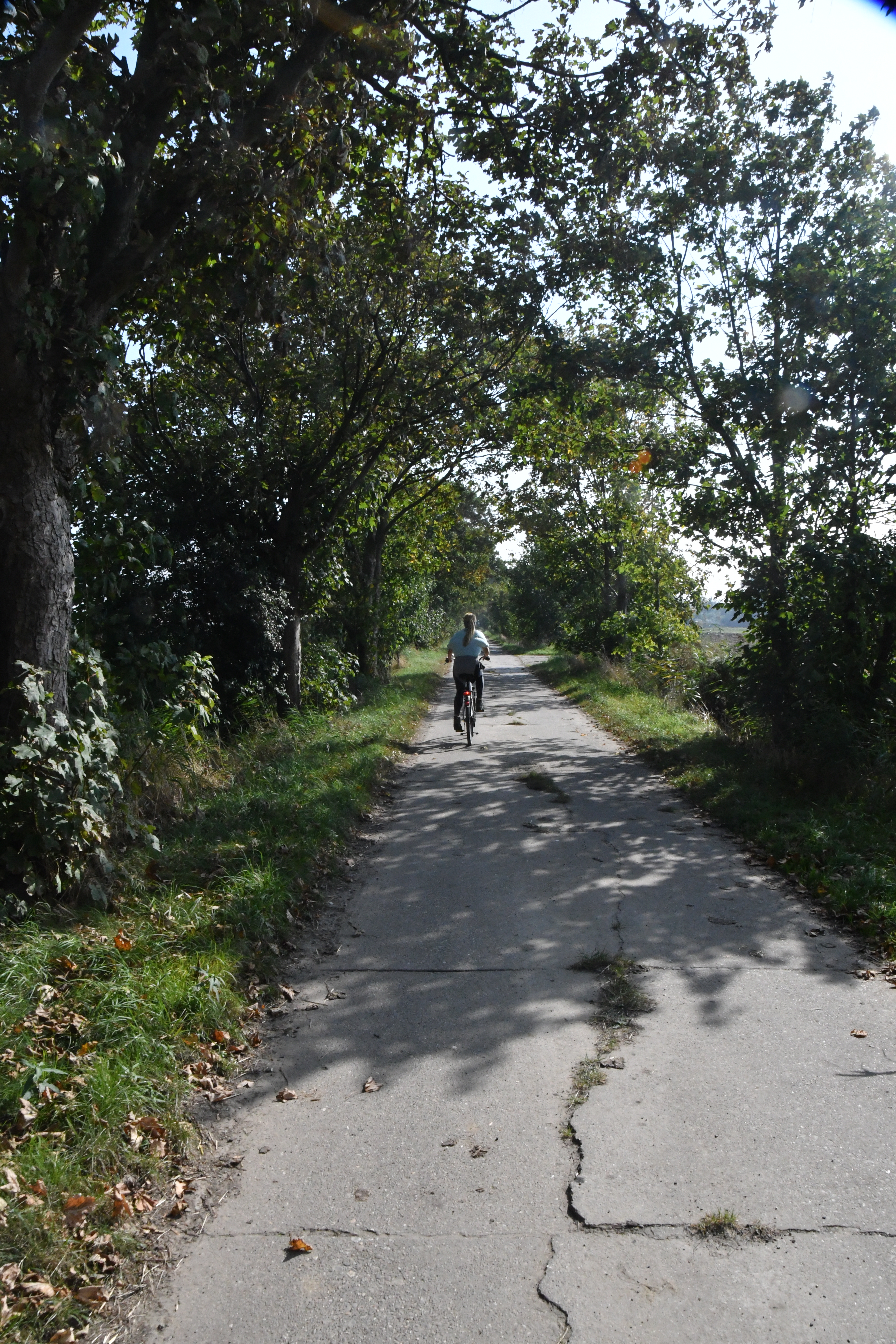 Elisas Proviantsacks lässt die letzten Reste springen. Eine wilde Mischung aus Apfelmus, Eier und Schoki. Wir gehen weiter, biegen ab, treffen kurze Zeit später einen weiteren alten Mann, auch mit Rollator. Ihm folgt ein Hund. Er erklärt uns, dass wir lieber umdrehen sollten und einen anderen Weg laufen sollen. Dieser Weg führt nämlich in einen abgesperrten Bereich, eine Auto-Teststrecke. Wir folgen seinem Rat. Der Weg ist nun eine asphaltierte Straße, es gibt keinen Fußgängerweg, aber zum Glück nur mäßig Verkehr.