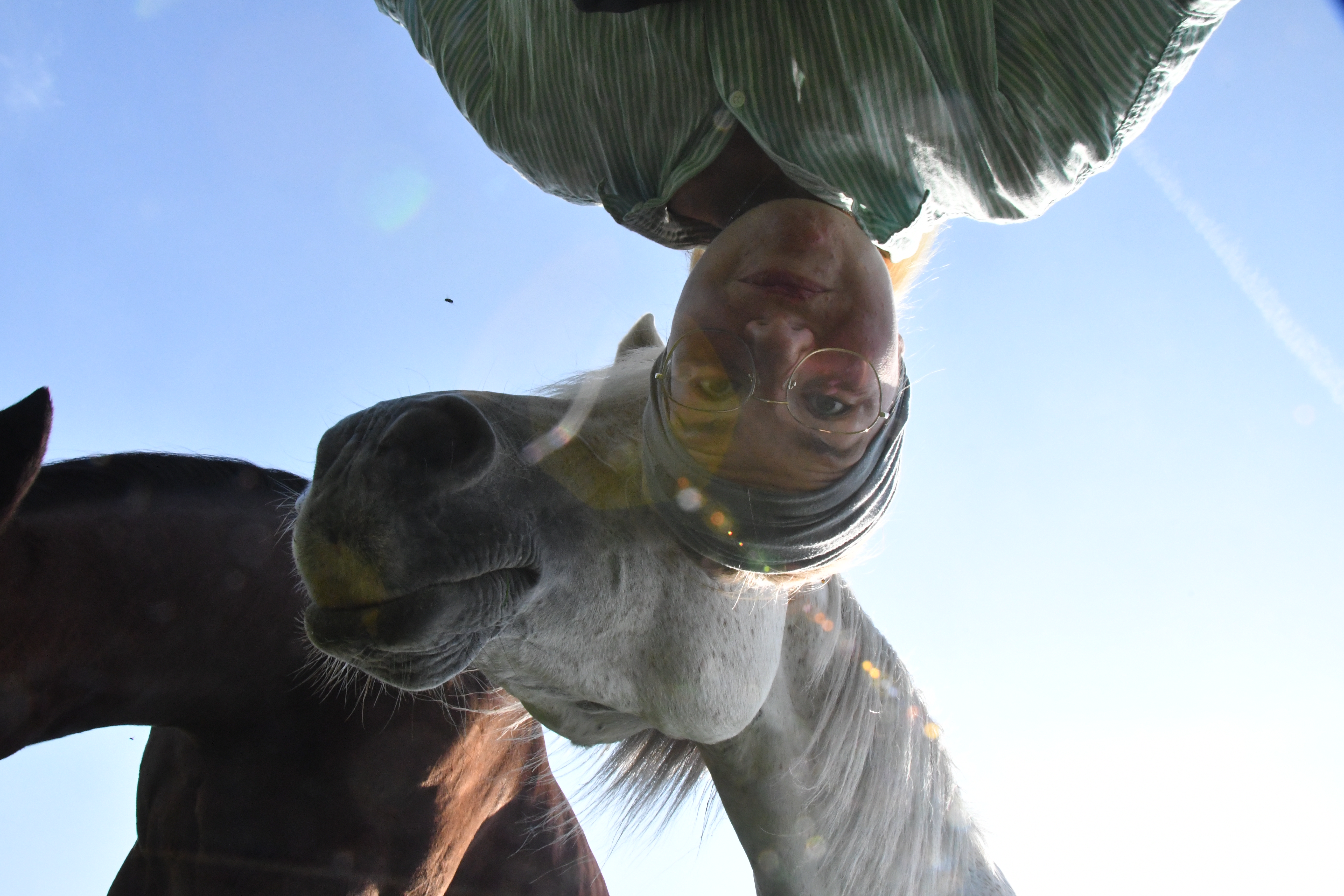 Spontan setzt sie sich auch auf Amicas Rücken, Phoebe folgt dem Paar wie ein Fohlen und Hannah fängt den Moment, der ihr wie im Fotohimmel erscheint, ein: